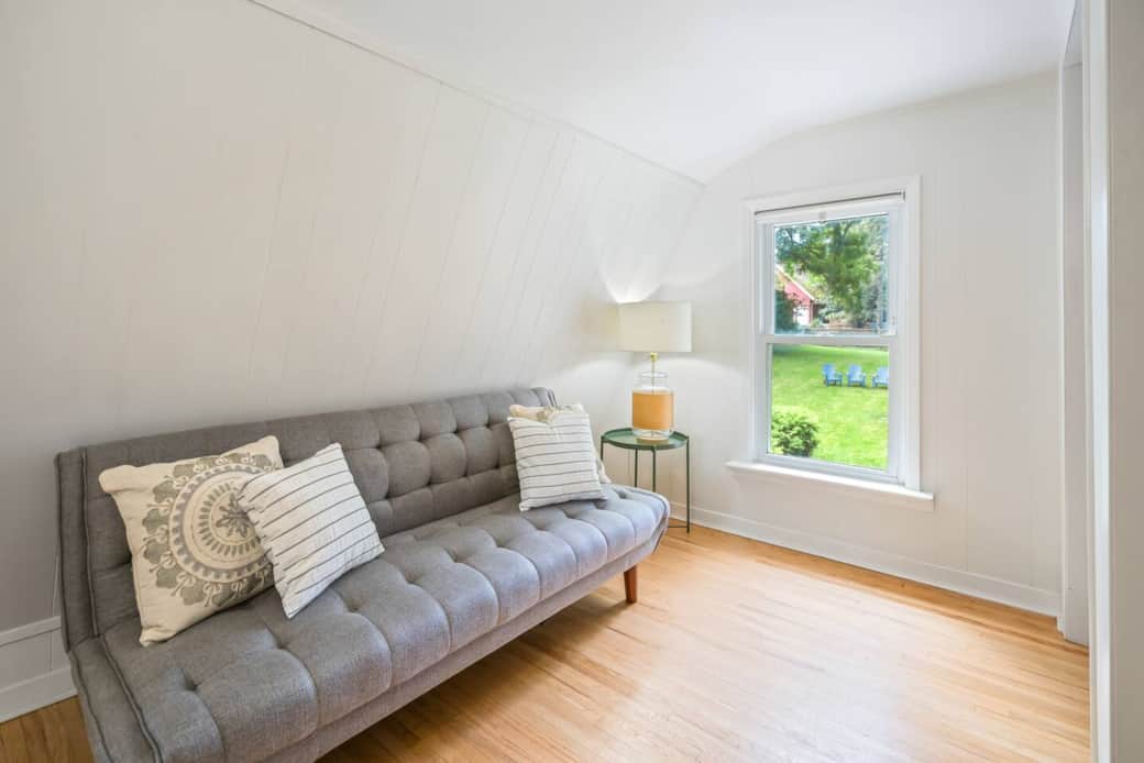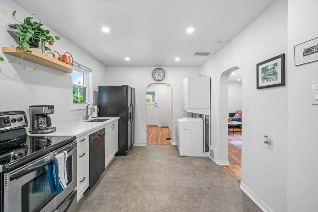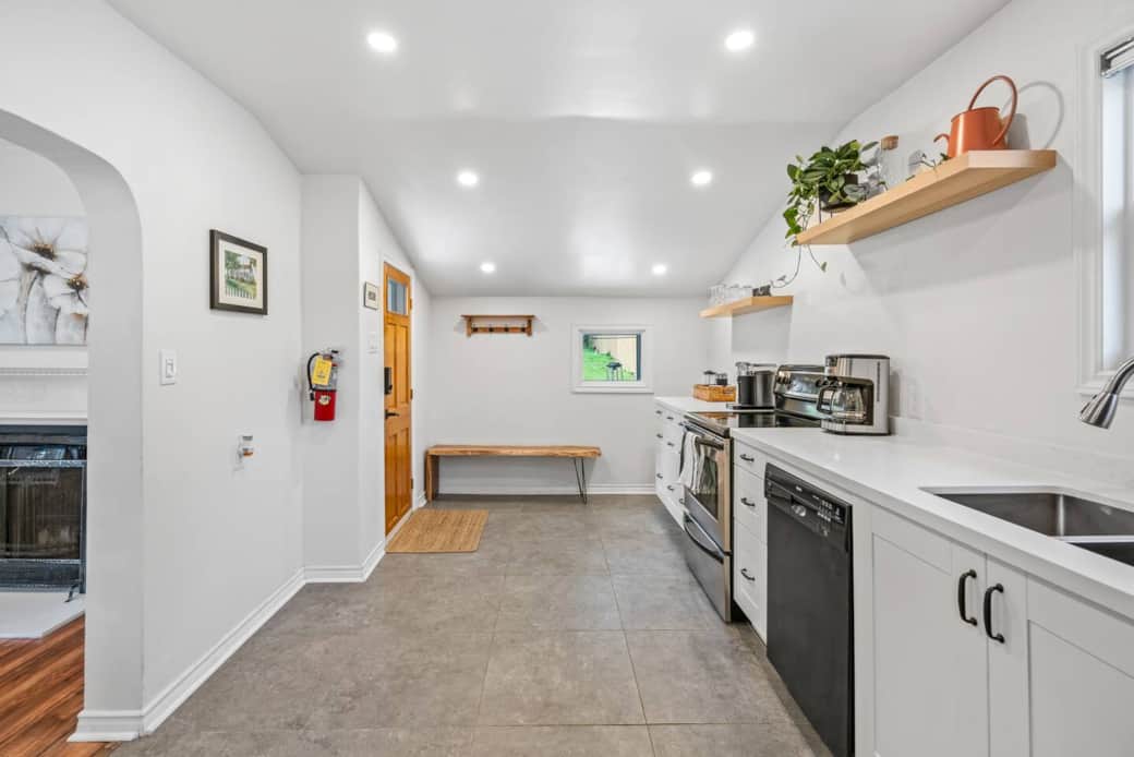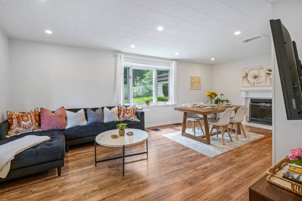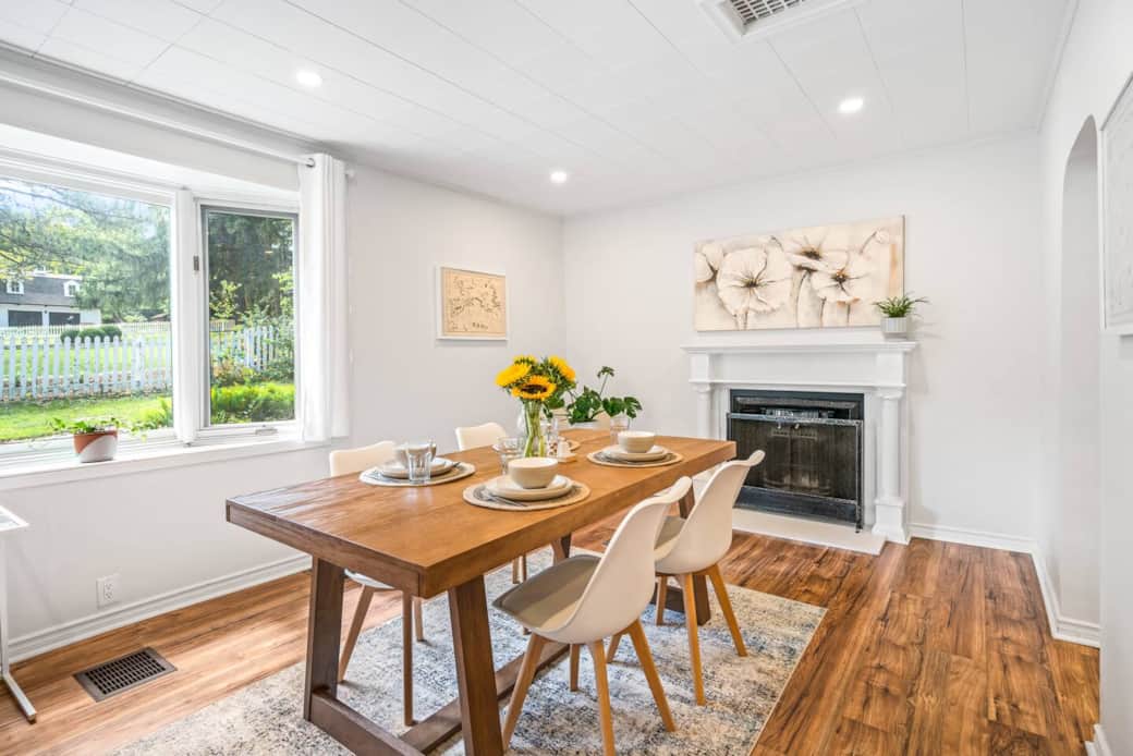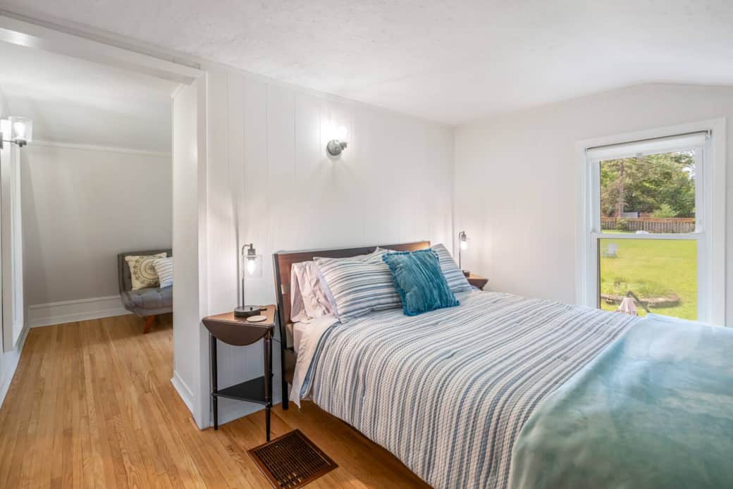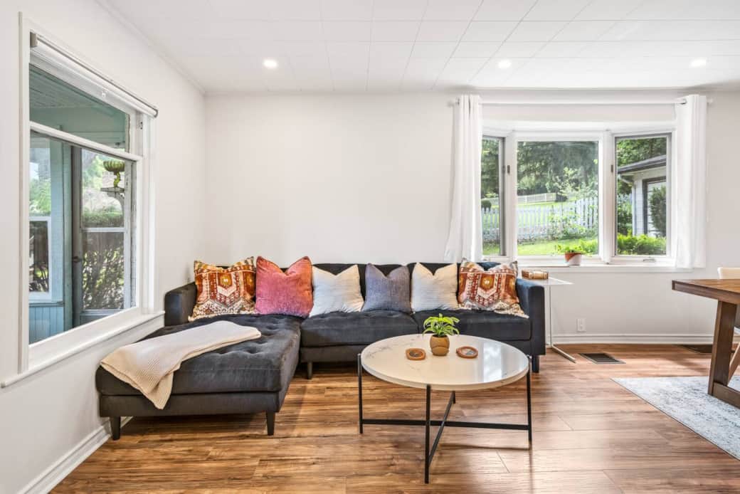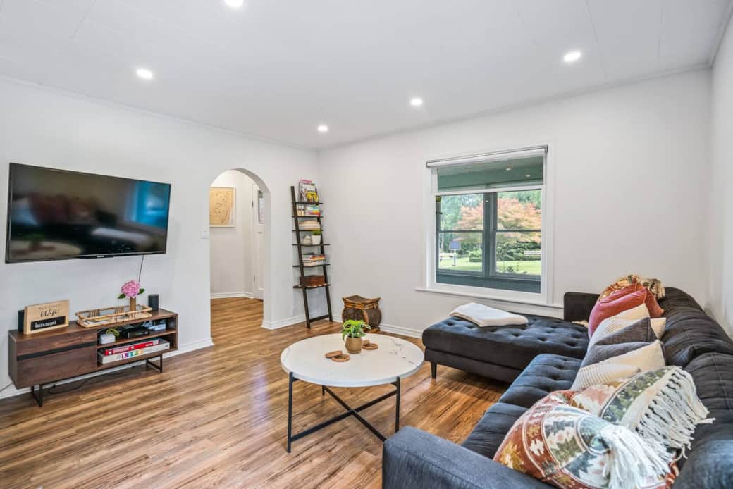 Peaceful backyard with large patio area